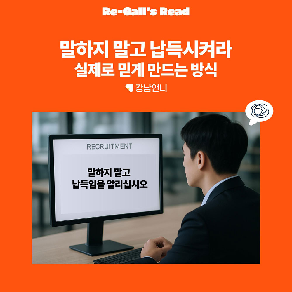 말로 감동시키는 시대는 지났고, 이제는 상대가 ‘그럴 수밖에 없겠구나’ 하고 이해하게 만드는 설계가 필요하다는 거죠. 이 이론은 채용 브랜딩에 특히 강력하게 적용됩니다. 왜냐하면 채용은 제품을 파는 게 아니라, ‘함께 일하자’고 제안하는 관계의 시작이기 때문이에요.