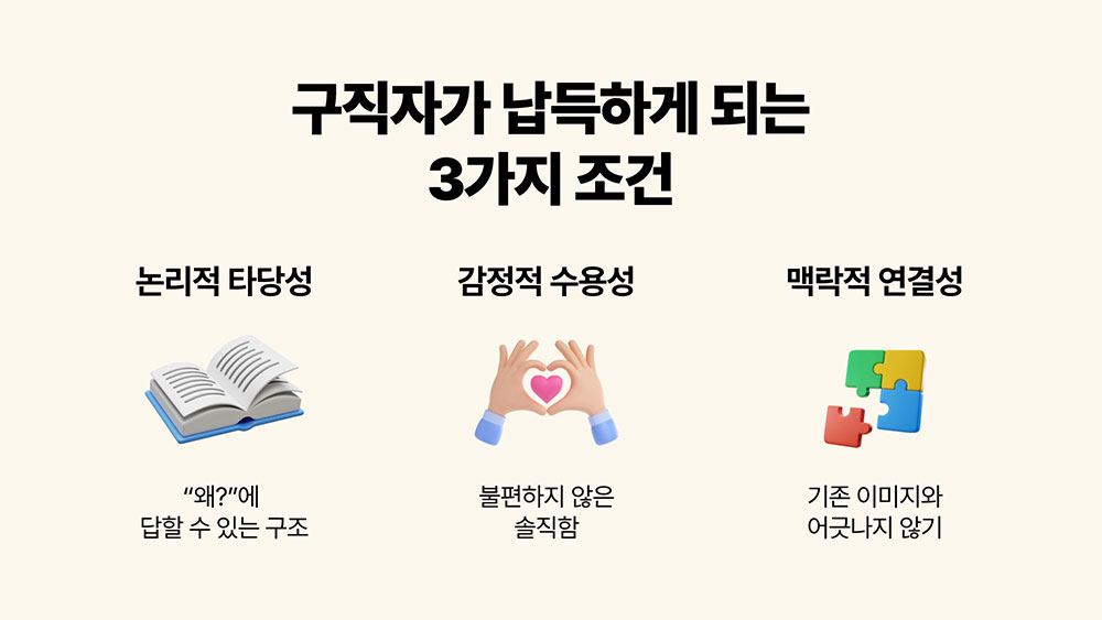 그럼 구직자가 채용 브랜딩에서 납득하려면 어떤 조건이 필요할까요?