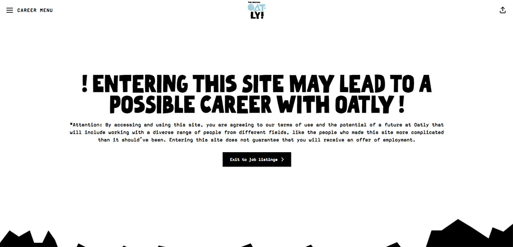 사회적 가치를 추구하면서도 업계의 터줏대감들과 계급장 떼고 맞짱 뜨는 Oatly, 그야말로 용감과 무모 사이를 넘나드는 행보입니다. 자, 이제 ‘겁대가리 상실한 착한 기업’이라는 수식어가 좀 이해가 되시나요? 이렇게 솔직하고 유쾌한 브랜드로 널리 알려진 기업이었기 때문에 ‘건방지고 불손한’ 채용 홈페이지가 기존의 고용주 이미지와 완벽하게 일치했던 겁니다. 일관성 있는 태도는 브랜드 내러티브를 확장시켜 고용주에 대한 이미지를 구직자에게 확실히 각인시키죠. 채용 홈페이지를 가교 삼아 브랜드로서Oatly가 기존에 지니고 있던 이미지를 채용 영역에까지 확장시킨 덕분에, 직장으로서의 Oatly도 혁신적이고 창의적인 직장으로 인식될 수 있었습니다.